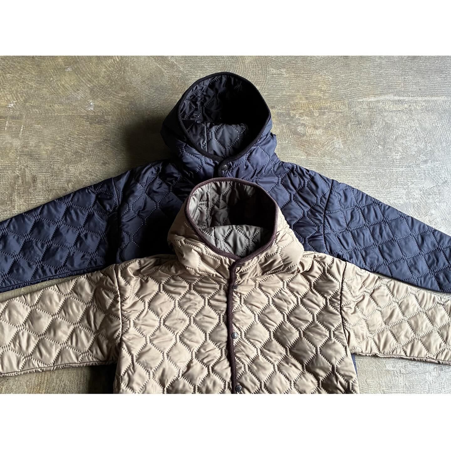 "ARMEN"定番のヒートキルトシリーズより、『PLAIN POLYESTERxPLAIN POLYESTER HEAT QUILT OVERSIZED HOODED JACKET WITH RIBBED CUFF』の2025年秋冬オーダー分が入荷しました。