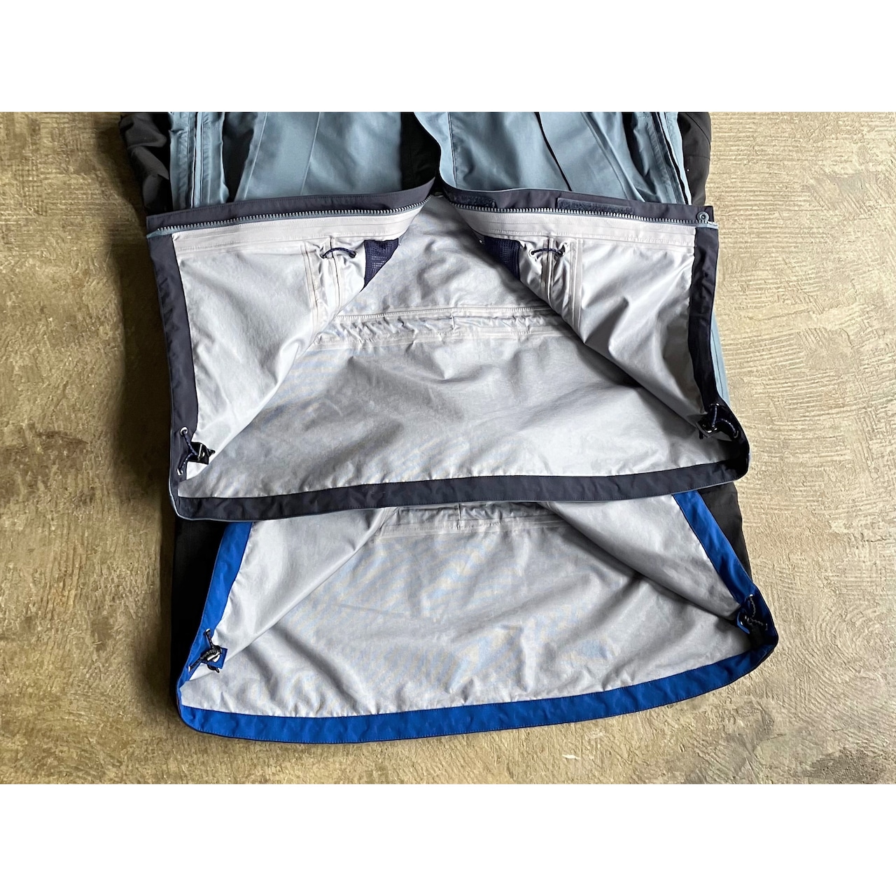 細部の作り込みに関しても、脇下のベンチレーション、ウエストのアジャスト機能、ポケットのダブルジップ、袖の立体的なパターン等、クラシカルでありつつ、本格的なシェルジャケットで仕上げがなされています。
