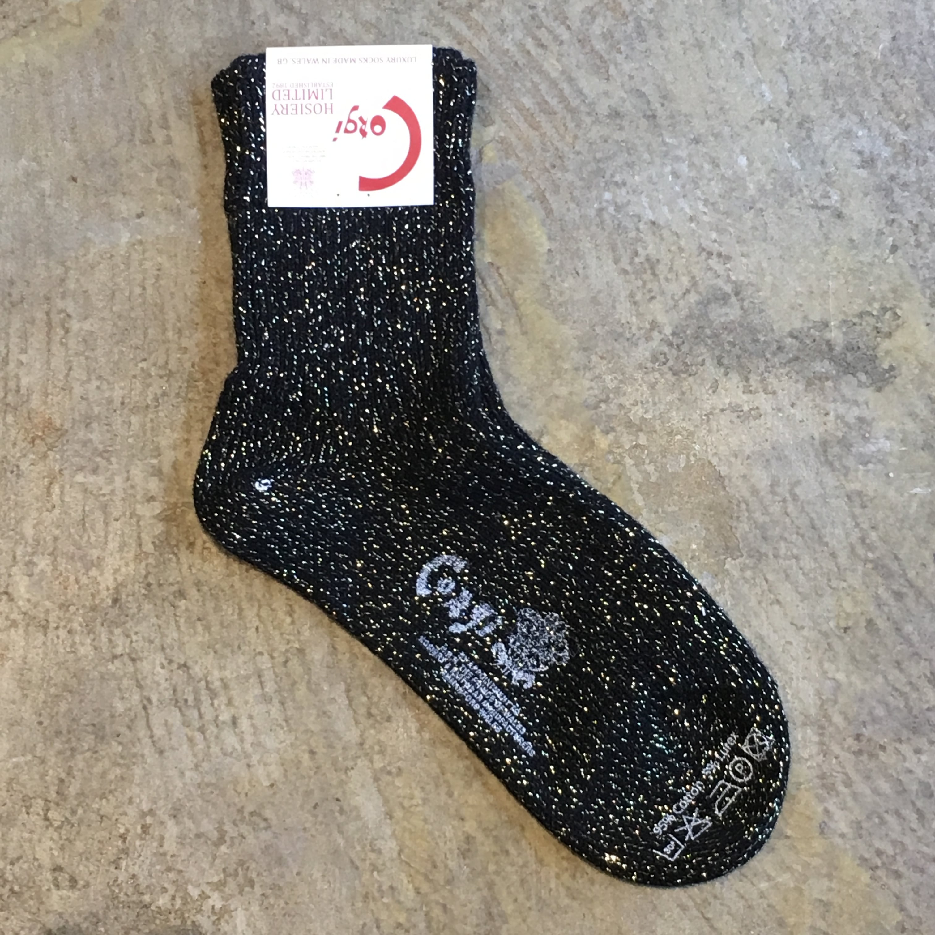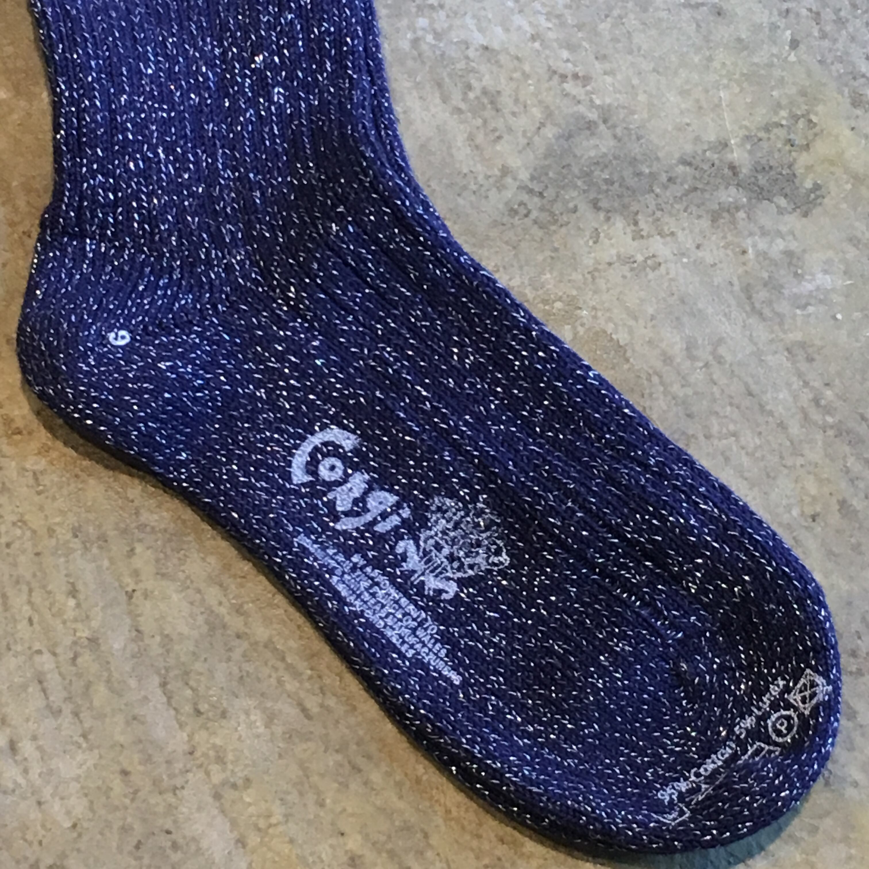 上質で高級感のあるマーセライズドコットンを使用した代理店別注のラメ入りショートリブソックスです。レディースのソックスです。